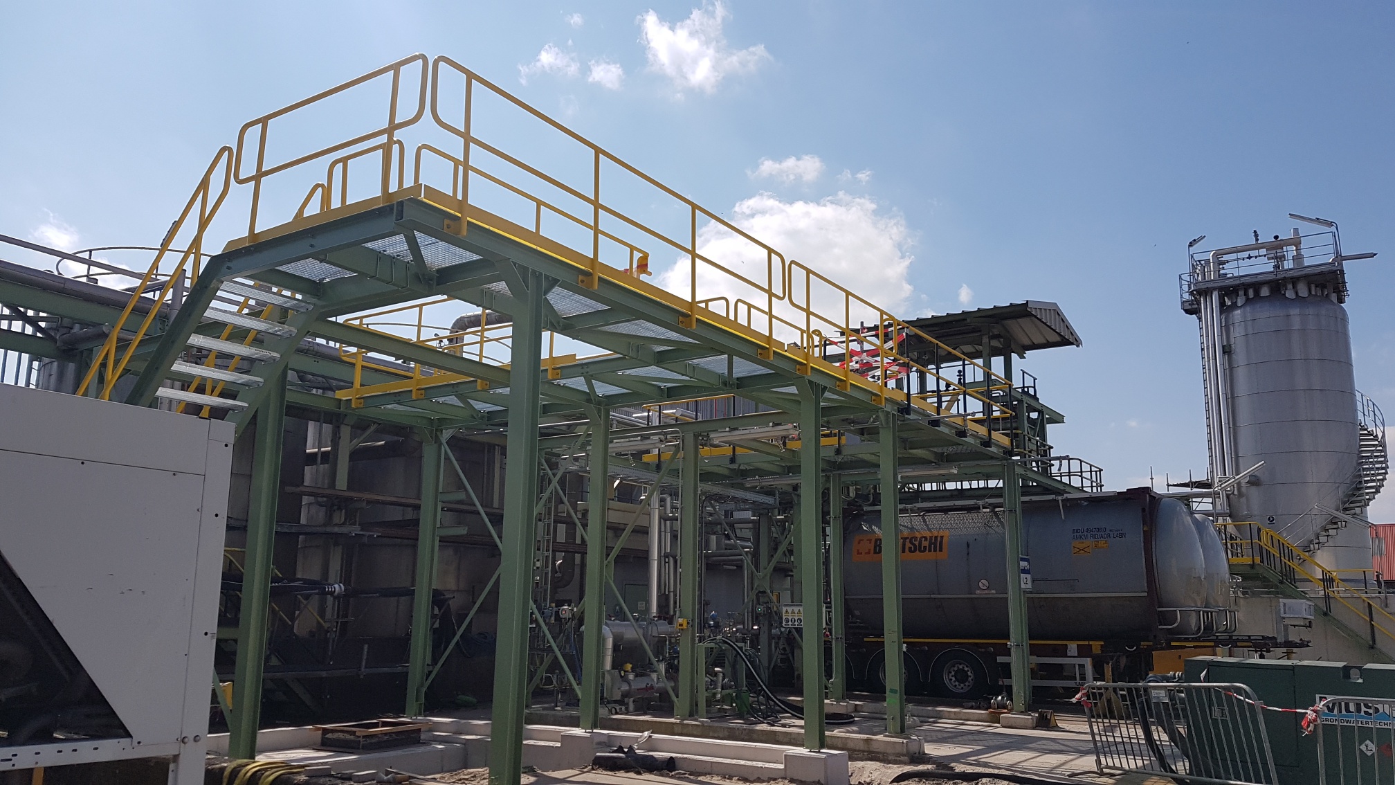 - ActivitiesThe manufacturing, painting and installation for a new polymer plant. Pipe racks, extensions and modifications from and in existing plants, including grating floors, handrails, stairs, cage ladders, cladding, roofing and doors