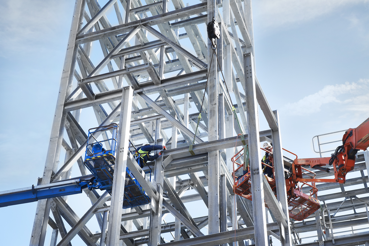 Structural steel works of modular steel constructions, platforms and pipe racks.