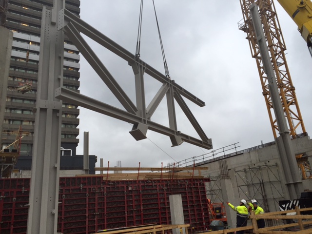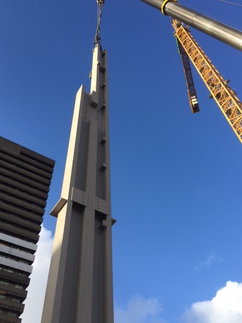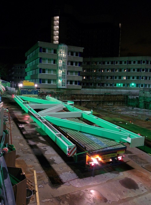Woensdag 3 februari heeft het montage team van RijnDijk Staalconstructies de eerste kolommen geplaatst op het EPO project. RijnDijk bouwt voor haar opdrachtgever, de TBI ondernemingen J.P. van Eesteren | Croon Elektrotechniek | Wolter & Dros, de staalconstructie voor het nieuwe kantoorgebouw van de European Patent Office in Rijswijk. Op donderdag volgde het vakwerkspant. Dit spant, dat gemaakt is in onze fabriek in Budel, is met speciaal breedte transport naar de bouwplaats gebracht. De komende 9 weken worden de onderste drie lagen gebouwd waarna vervolgens in een tempo van circa 1 verdieping per week, 26 weken lang doorgebouwd wordt totdat het gebouw meer dan 100 meter hoog is. Hiermee is dit een uniek bouwwerk in Nederland waar niet eerder een dergelijk hoog gebouw uit staal gebouwd is.