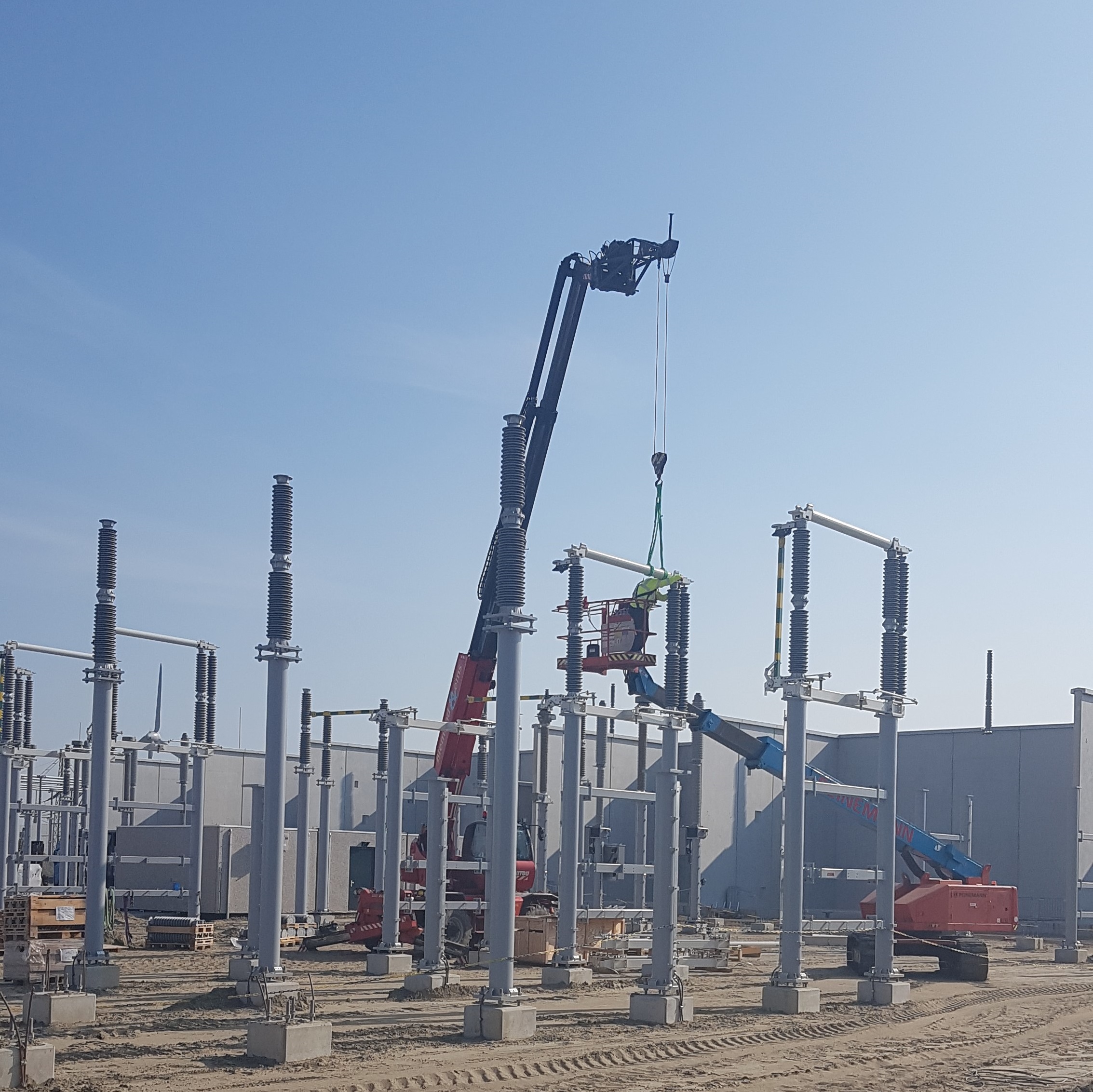 Onze mannen monteren bovendien de hoogspanningscomponenten, zoals bijv. isolatoren, op de stalen onderconstructies.